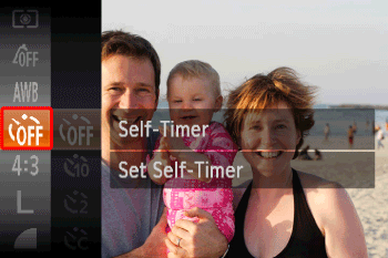 ] buttons to choose [Self-Timer].Then, press the <FUNC./SET> (