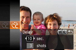 - For movies shot using the self-timer, [Delay] represents the delay before recording begins, but the [Shots] setting has no effect.