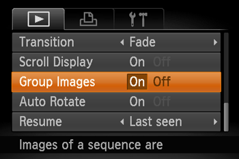 ] tab, and then choose [Off]. However, grouped images cannot be ungrouped during individual playback.