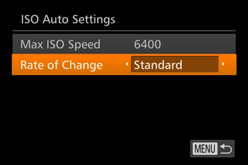 Select [Rate of Change] under [ISO Auto Settings].