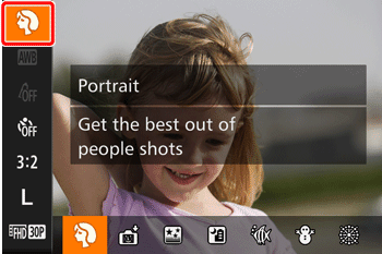 ![]() | Shooting in Various Conditions | Shoot portraits | [Portrait] ( ) | Take shots of people with a softening effect. |