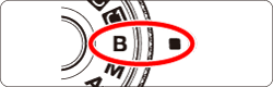 In this mode, the shutter stays open as long as you hold down the shutter button completely, and closes when you let go of the shutter button. This is called bulb exposure. Use bulb exposures for night scenes, fireworks, the heavens, and other subjects requiring long exposures.