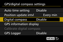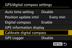 While you are using the GPS function, if the [Calibrate digital compass] screen appears or if the direction indicated looks questionable, calibrate the digital compass as follows.