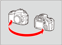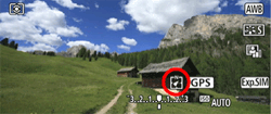 During Live View shooting and movie shooting, you can confirm the direction using the arrow icon at the location circled in this sample screen.