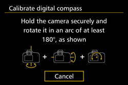 •If the compass is not calibrated after you perform this, turn your body to the right or left and move the camera again.