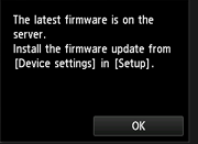 When the printer is connected to the Internet and if the latest firmware is available on the server, the printer will give the following message: