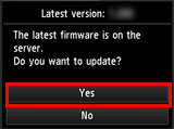 (7) The message will be displayed, asking you if you wish to update the firmware. Tap [ Yes ].