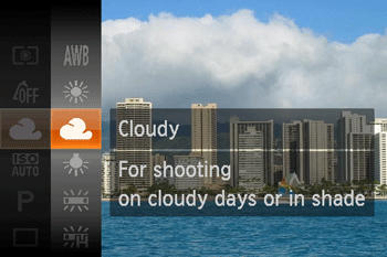 Auto | Automatically sets the optimal white balance for the shooting conditions. |