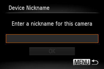 ] button to display the keyboard, and use it to enter a nickname for the camera.*You can change the device nickname (display name) that is displayed on the camera. To change the nickname, press the [