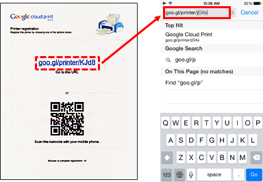 2. Using the printed URL, register the printer to Google Cloud Print.
