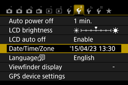 When you turn on the power for the first time or if the date/time/zone are reset, the date/time/zone setting screen will appear. Follow the steps below, making sure to set the time zone first. Set the camera to the time zone in which you currently live so that, when you travel, you can simply change the setting to the correct time zone for your destination, and the camera will automatically adjust the date/time.