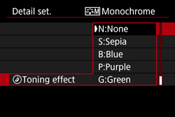- By applying a [Toning effect], you can create a monochrome image in that color. It can make the image look more impressive.