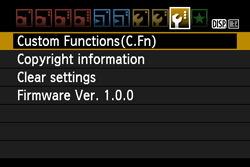 1. Press the <MENU> button to bring up the menu display. Select [Custom Functions(C.Fn)] on the [