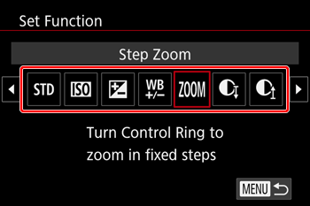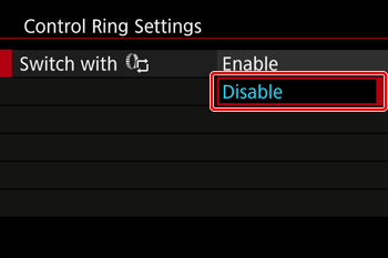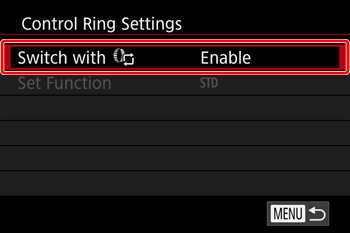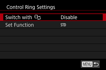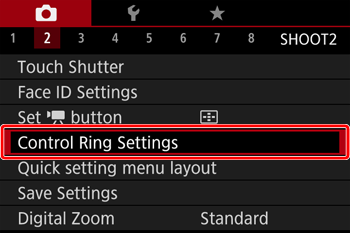 : Control Ring Settings] on the menu screen to select it.