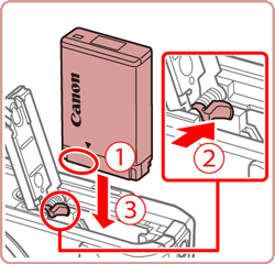facing as shown, press the battery lock