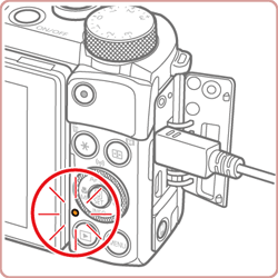 - Charging stops and the indicator goes off if, after you begin charging as described above, you press the power button to turn the camera off.