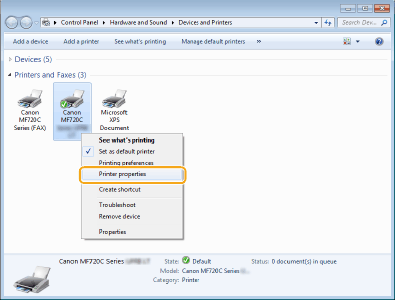 2. Right-click your printer icon and click [Printer properties] or [Properties].