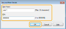 Enter the user name for [User Name] and PIN for [PIN], and click [OK].