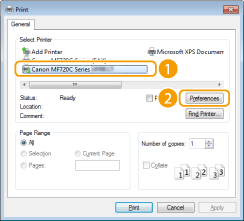 2. Select the printer driver for the machine, and click [Preferences] or [Properties].