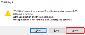 Please exit any open applications before uninstalling EOS Utility Ver. 3.x.