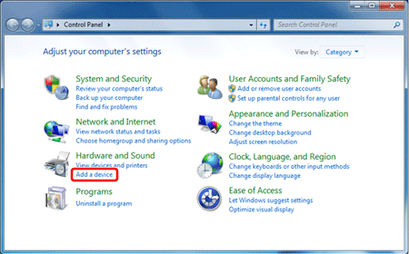 1. Click the Start menu, and then click [Control Panel] > [Add a device].