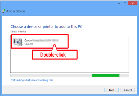 2. The icon for the device name is displayed on the [Add a device] screen. Double-click the icon and driver installation will begin.