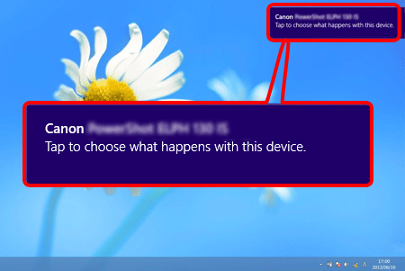 3. When the connection between the camera and the computer is established, the screen on the right is displayed on the computer. Click the message [Tap to choose what happens with this device ].