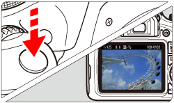 > (Live View shooting) button, the image will appear on the LCD monitor.- The Live View image will closely reflect the brightness level of the actual image you capture.