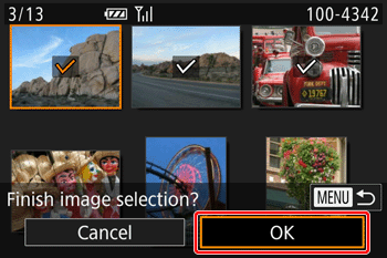 7. After you have finished selecting images, press the [MENU] button.