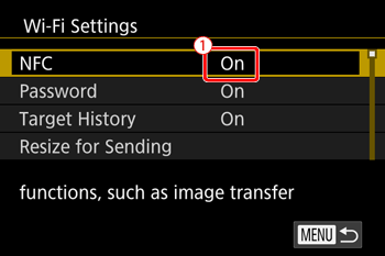 ] tab on the camera’s menu screen, and confirm that [NFC] is set to [On] (