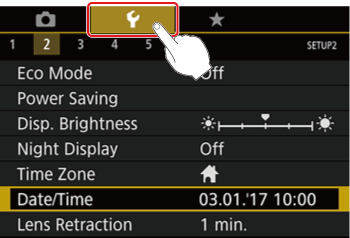 - Touch [Date/Time], and then press the [  ] button. ] button.
