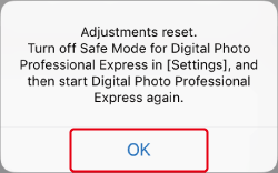 If it is not operating in safe mode, force quit Digital Photo Professional Express, and restart the application.