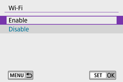 > buttons to select [ Wi-Fi/Bluetooth connection ], and press <