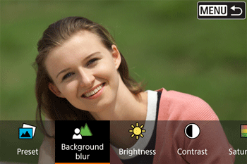 > buttons to select [ Background blur ], then press <