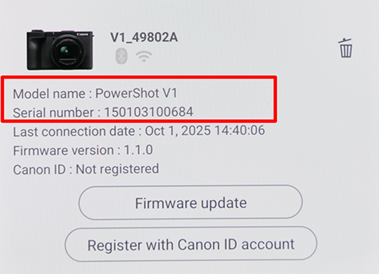 *For detailed instructions, please refer to the "Bluetooth Pairing and Wi-Fi Connection to Smartphones" section in the Canon PowerShot V1 Product Manual. (Canon : Product Manual : PowerShot V1 : Connecting to a Smartphone or Tablet)